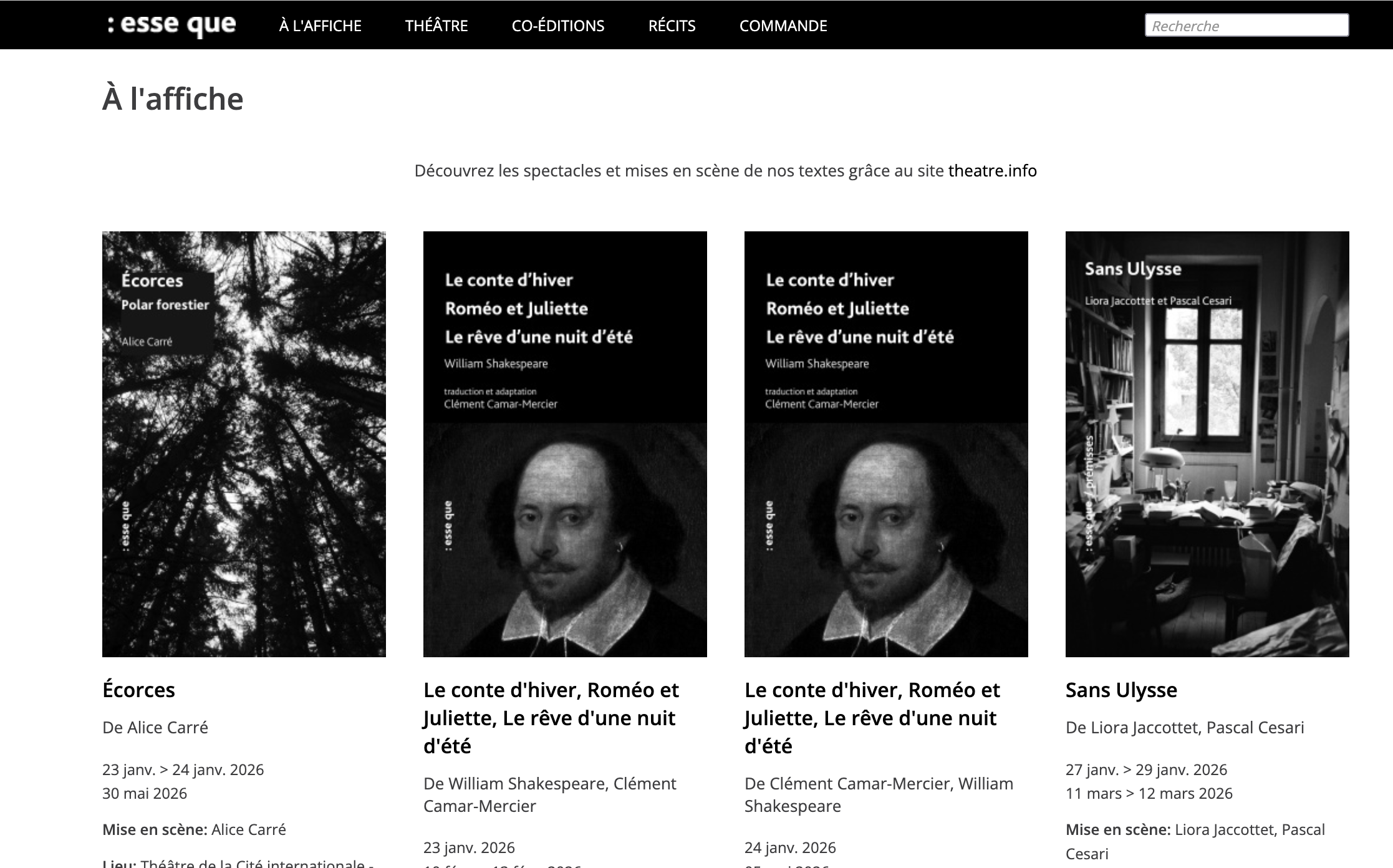 L'actualité des spectacles soutenus par le JTN et les noms artistes et techniciens