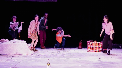 Mauvais esprit focuses on childhood fears and popular beliefs. It is performed in the actors' four native languages: Arabic, French, Lingala and Mandarin. French is the main language, and the show is surtitled. Four childhood friends meet in a house on the edge of a forest. After the day's friendly but complex reunion, the night awakens the unconscious, and each of them is confronted with their childhood terrors. Together, they try to understand and thwart what makes them tremble. The play draws its fantastic inspiration from a number of fairy tales, which we are having fun twisting and mixing to give them a new flavor and strangeness. On the one hand, we want to evoke without bravado the question of our terrors and anxieties, but we also want to celebrate friendship, that friendly foundation that reinvents our families, that softens and heals them.