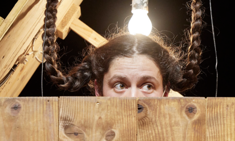 D’une simple caisse en bois, elle tire toute sa fiction, donnant corps à une maison peuplée de toutes sortes de présences non-humaines fortes, matérielles et animales, coexistant sous le même toit, comme dans la tête de la jeune artiste. Au centre du dispositif, mains et pieds à l’ouvrage, dans une spectaculaire dissociation des gestes, Annina Mosimann anime l’espace de tout son corps. Tapie dans la boîte, lui prêtant vie à tous les étages, elle manipule des objets et des sons mais également nos regards, comme elle libère nos imaginaires avec malice. Dès lors tout est possible, comme dans les œuvres surréalistes, tout se transforme ; rêve et réalité se mélangent, l’étrange et le connu, l’inconscient et le certain. On ne sera pas étonné d’apprendre qu’Annina Mosimann a travaillé avec des artistes tels que Nicole Mossoux, Renaud Herbin ou encore Elise Vigneron.