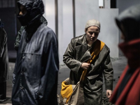 C’est l’histoire d’un cirque itinérant qui perturbe inéluctablement les lieux qu’il traverse. Sur une place, la troupe déploie la carcasse d’une baleine, immense caisse de résonance pour les questions surgies en contrebande des entrailles de la ville, comme autant de ferments de sédition qui viendront troubler l’ordre établi, faire dérailler le cours normal des choses. C’est ce moment de bascule, porté par la voix d’un prince-poète hypnotisant les foules, que nous invite à expérimenter Noëmie Ksicova dans cette adaptation du roman de László Krasznahorkai, La Mélancolie de la résistance. La metteuse en scène, autrice et actrice, accompagne toutes les sections — jeu, mise en scène, dramaturgie, régie-création et scénographie-costumes — du Groupe 48 de l’École du TnS dans cette création qui ouvre collectivement la boîte noire de la fiction.